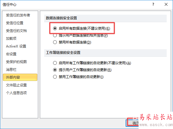 以上就是excel2010啟用外部的所有鏈接的教程,希望大家喜歡,請繼續關注錯新站長站。