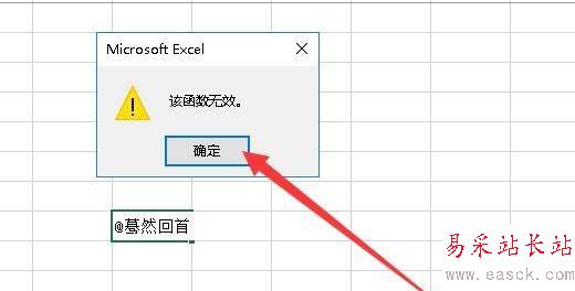 1、我們在Excel表格中輸入@符號后,會彈出一個函數無效的提示信息。