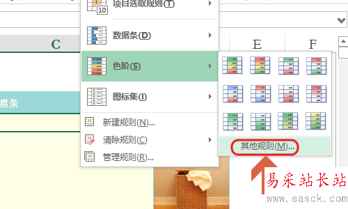 3、在數據條的右側依舊會彈出一個窗口,我們點擊該窗口最下面的“其他規則”這一項,如下圖;