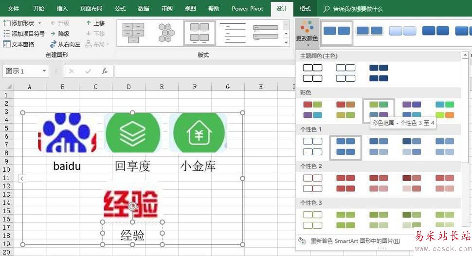 5、可以通過菜單中的“更改顏色”按鈕,來修改圖形的顏色