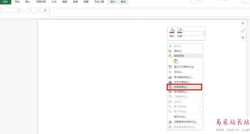 5、我們將鼠標光標移至圖表區域,鼠標右鍵單擊,然后點擊"選擇數據"。