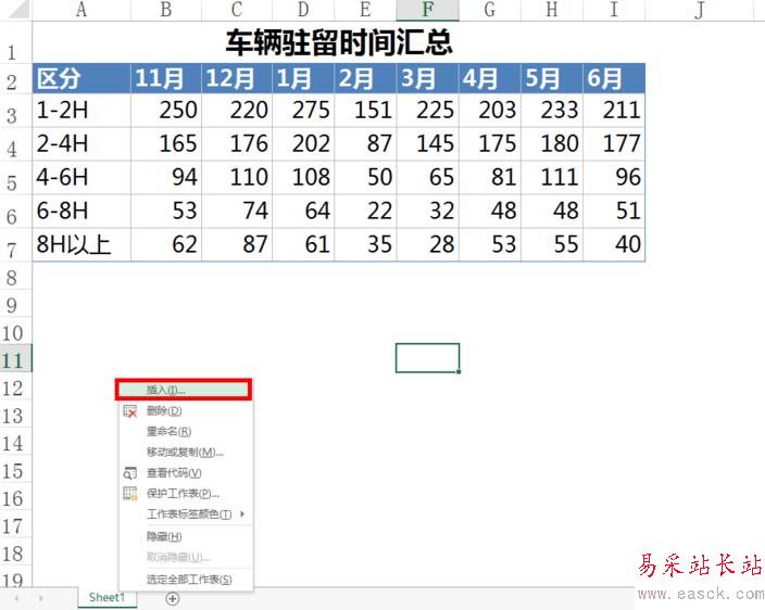 2、我們將鼠標光標移至當前Sheet(名稱)所在位置,鼠標右鍵單擊,鼠標左鍵單擊選擇"插入"。