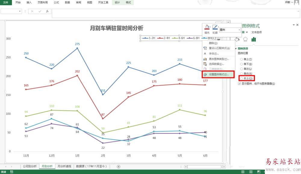 10、我們也可以左鍵單擊選中圖例后,然后鼠標右鍵單擊選擇"設置圖例格式",將位置調整為右上,也可以拖動圖例到任何位置。