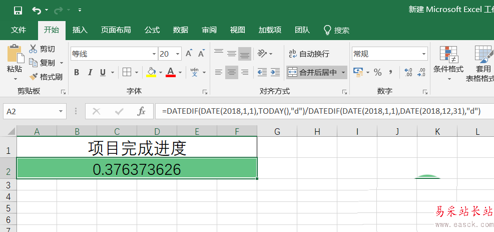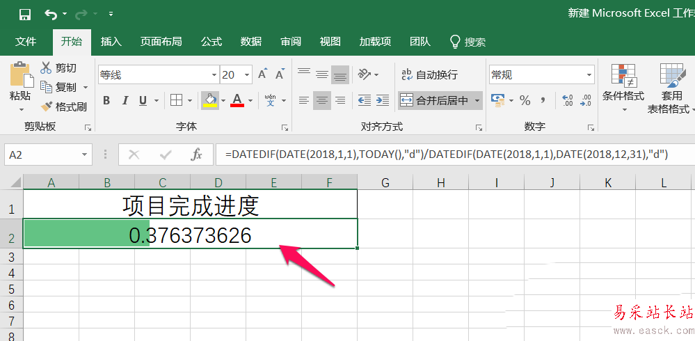 3、回車之后可以看到,今天已過時間占整個2018年的全年時間的0.376373626,如下圖: