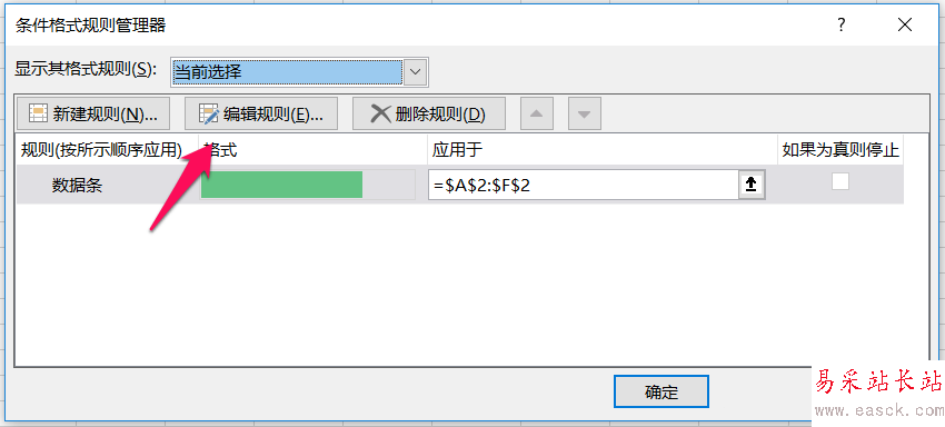 7、然后在彈出的條件格式規則管理器對話窗中點擊編輯規則,如下圖: