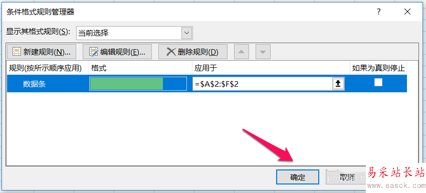 9、然后確定之后返回到條件格式規則管理器中,點擊確定,如下圖: