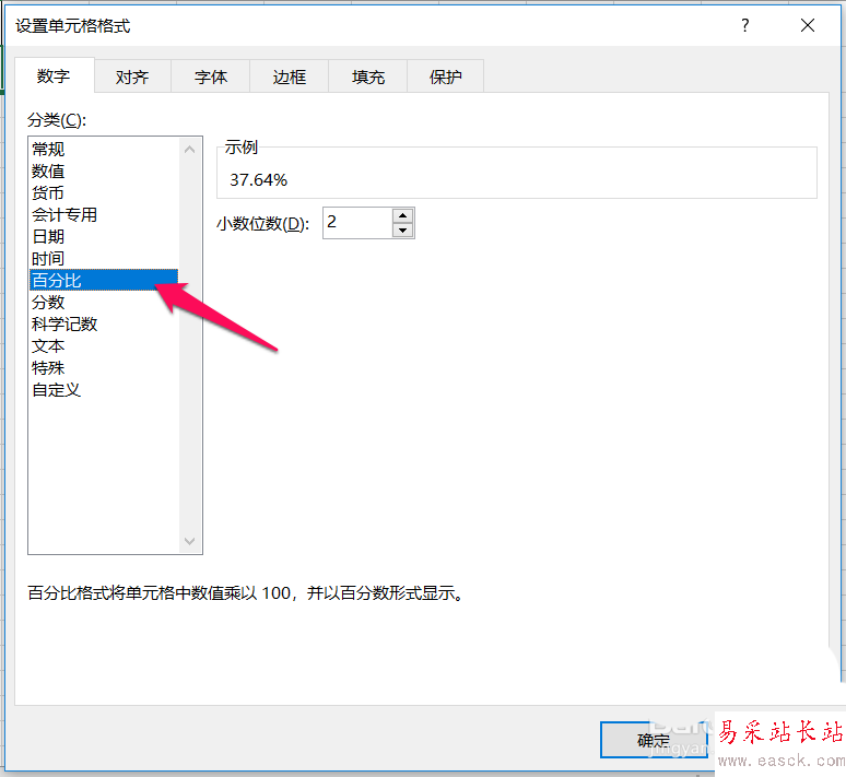 12、在設置單元格格式點擊數字->百分比,如下圖: