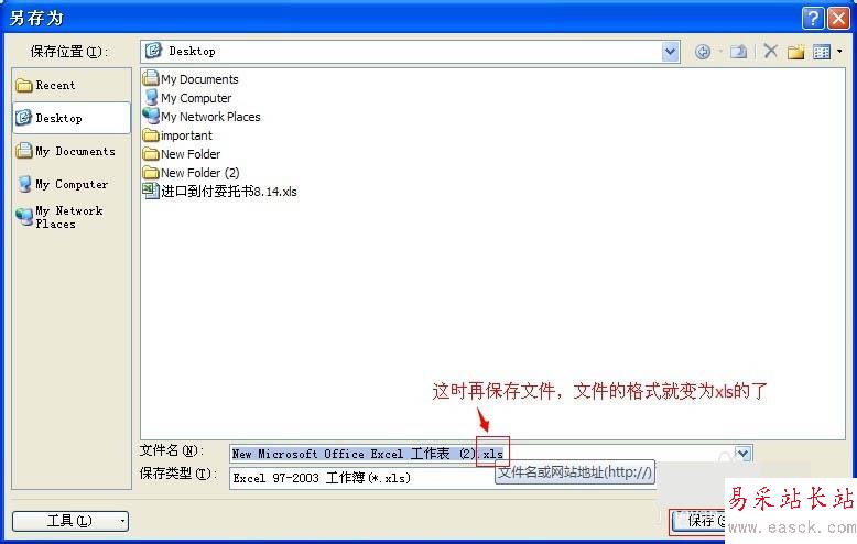 5、彈出來(lái)“應(yīng)存為”的對(duì)話框,可以看到文件名一欄的后綴為xls,點(diǎn)擊“保存”,這樣文件的格式變成xls,就可以用Excel 2003打開(kāi)這個(gè)文件了。注意:在Excel 2003中無(wú)法打開(kāi)xlsx文件,但在Excel 2007和Excel 2010中卻可以打開(kāi)xls文件。