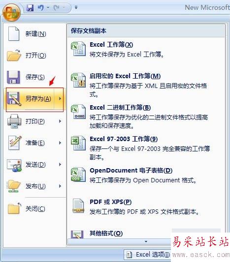 3、點(diǎn)擊出來(lái)很多Excel的選項(xiàng),向下找到“另存為”一欄。