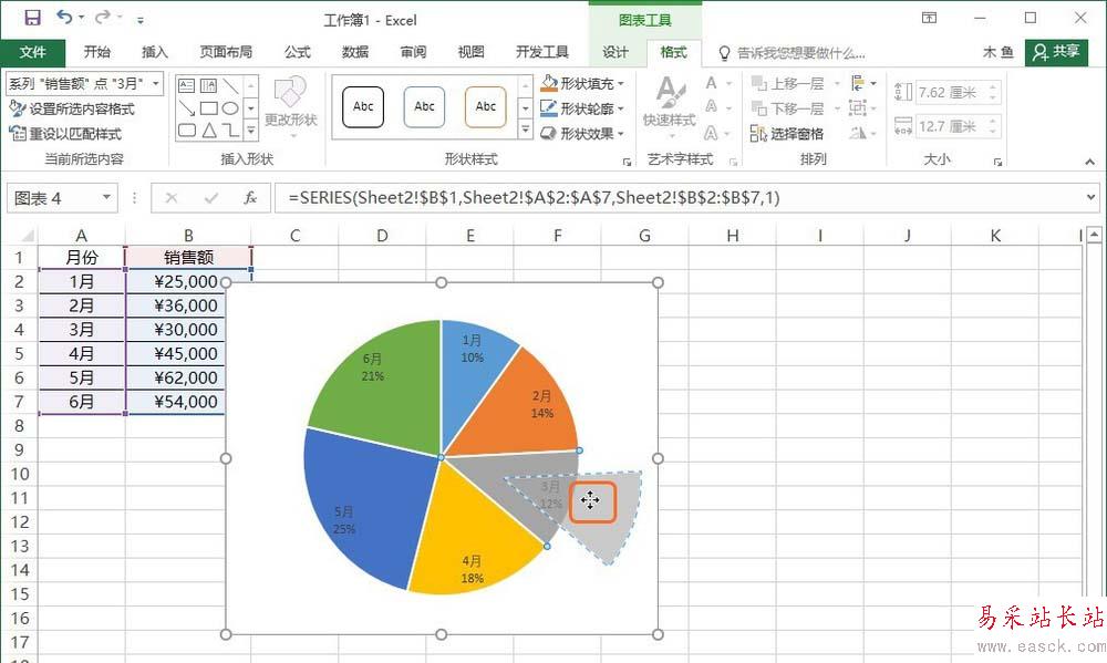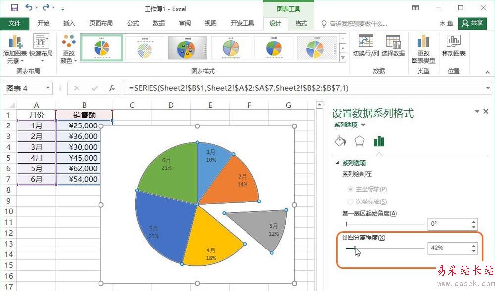 以上就是excel分離餅形圖餅形塊的教程,希望大家喜歡,請繼續關注錯新站長站。