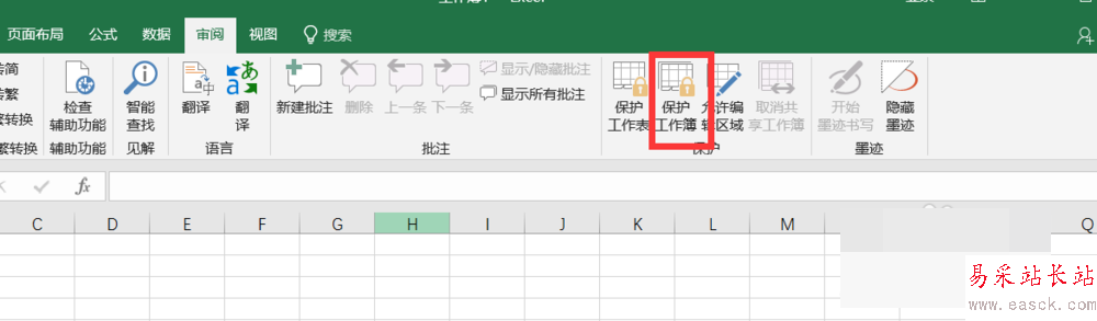 5、點擊保護組中的保護工作簿。