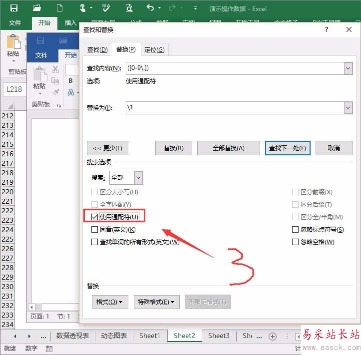 3、在更多選項上,把使用通配符前面的勾選上(這個做的一個原因,就是因為前面使用的,加入的是通配符,而不是文本,不勾選可能無法達到效果)。