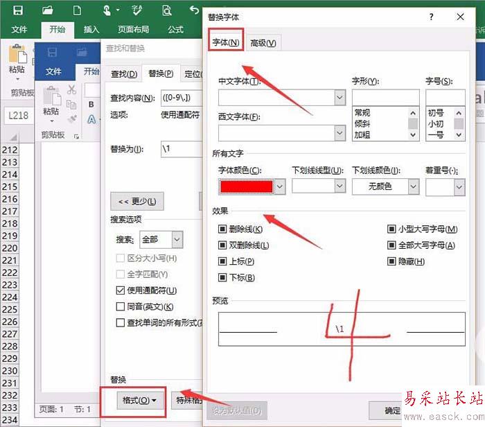 4、重要一步,就是在格式里面,把字體里面修改一下,把顏色改為其他的顏色,比如這里選擇的是紅色。