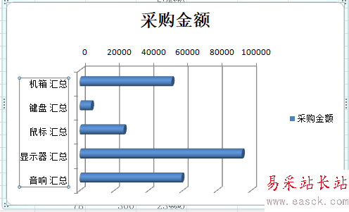 1、選擇圖表類型。選擇貨物名稱和采購(gòu)金額數(shù)據(jù)列,然后選插入---圖表--條形圖---圓柱圖