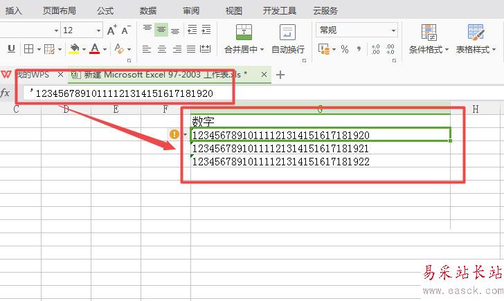 2、然后復制需要粘貼的數字,到已更改單元格格式的這一列當中。