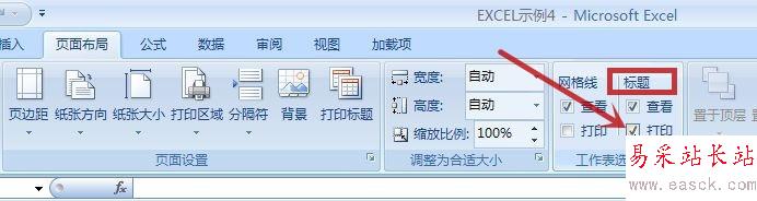 5、勾選“標(biāo)題”(圖中紅框)內(nèi)的“打印”前的方框(圖中紅色箭頭所指)