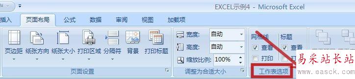 7、也可點(diǎn)擊“工作表選項(xiàng)”(圖中紅框)旁的展開(kāi)箭頭(圖中紅色箭頭所指)