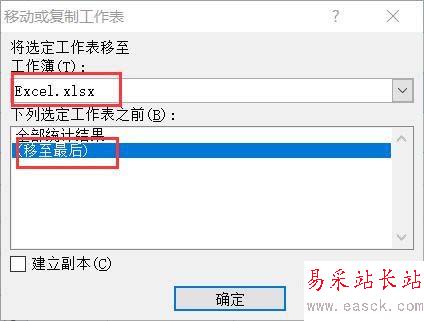 3、在彈出框中,選擇工作薄Excel表,選擇移動到最后,單擊確定