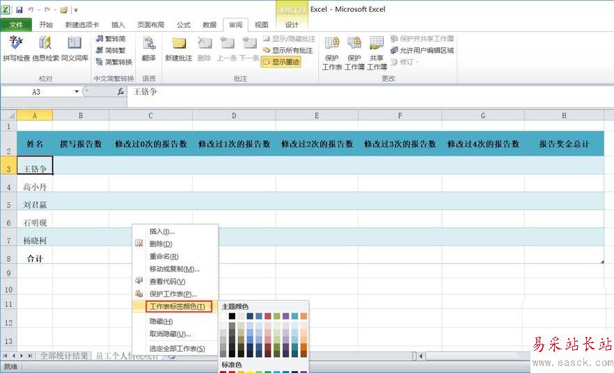 5、將標簽名稱修改為”員工個人情況統(tǒng)計“