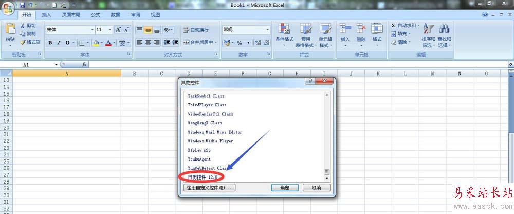 4、之后,會彈出一個”其他控件”的對話框,我們拉到最后面,可以看到有日歷控件,選擇然后點(diǎn)擊確定