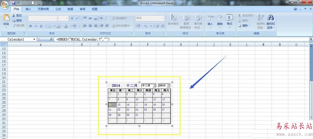 5、然后,我們用鼠標(biāo)左鍵單擊工作表任何一個地方,都會彈出日歷表格,我們還能根據(jù)實際需要調(diào)整日歷的大小,如圖