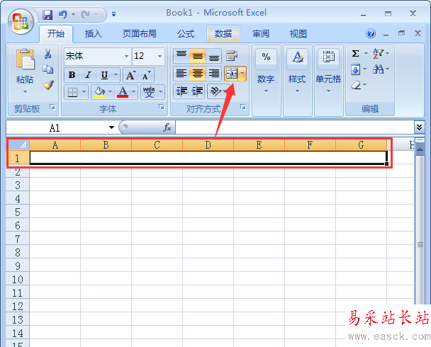 1、首先打開Excel表格,選中字母【ABC……G】列進(jìn)行【合并及居中】。