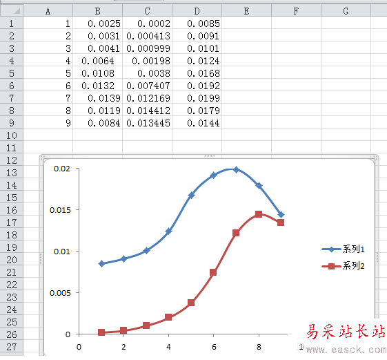 2、從作出的圖可以看出,由于系列1和系列2的Y值較為相近,因此所做的圖系列1和系列2的曲線是重疊在一起的