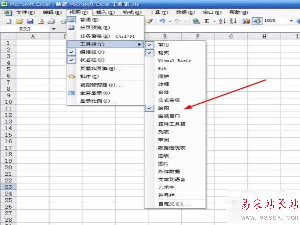 2、在視圖下選擇“工具欄”——“繪圖“命令。