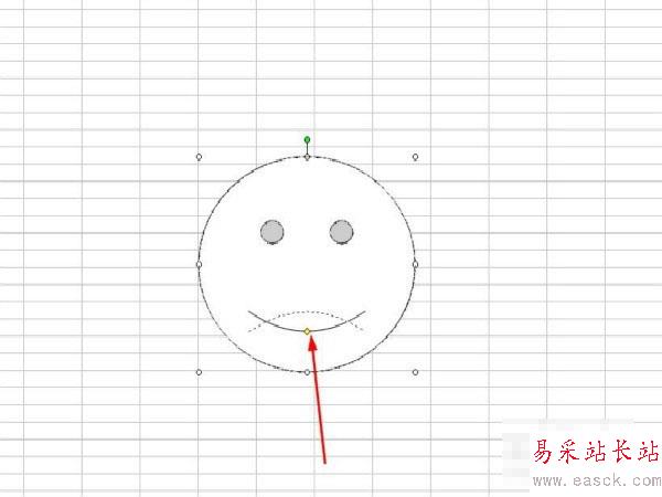 7、單擊如圖所示的圖上黃色的點往上拉,就可以把笑臉變成哭臉了。