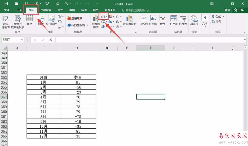 2、接著,插入圖表,圖表的類型,就選擇平時的柱狀圖即可,因為有負(fù)數(shù)的存在,所以圖表會有上下兩層分層,就是我們想要的效果,但是中間的坐標(biāo)軸,就需要改動了。