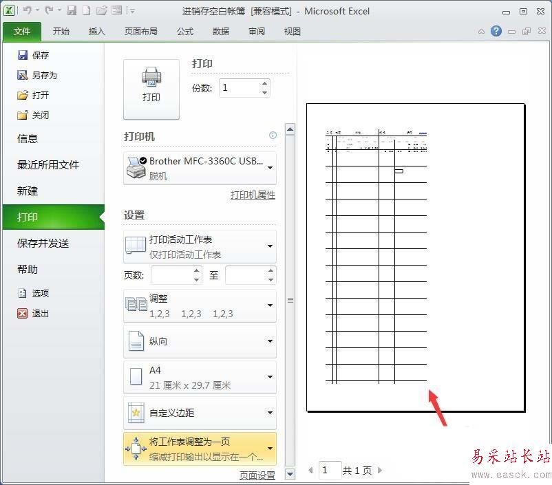 4、在預覽框看看,寬度就調整為一頁了。如果是行數想調為一頁,同樣點擊底部按鈕,選擇“將所有行調整為一頁”即可