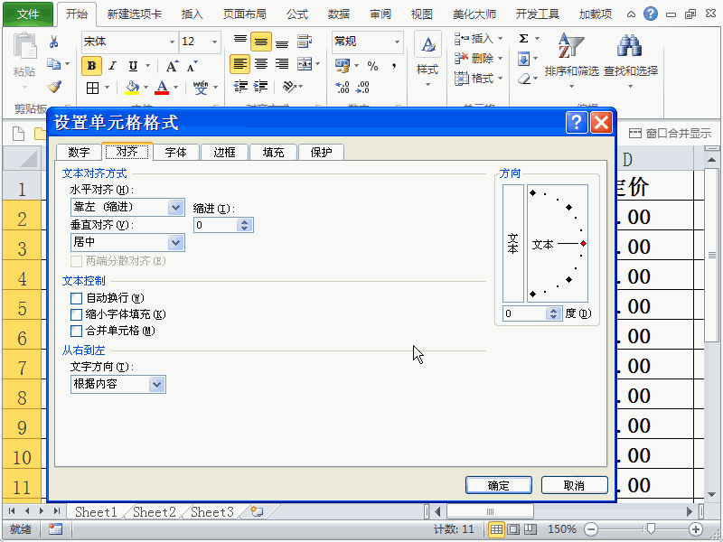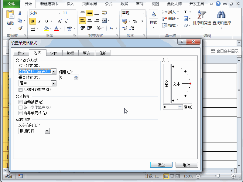 3、在設置單元格格式對話框中,切換到對齊選項卡,設置文本對齊方式為分散對齊(縮進)。