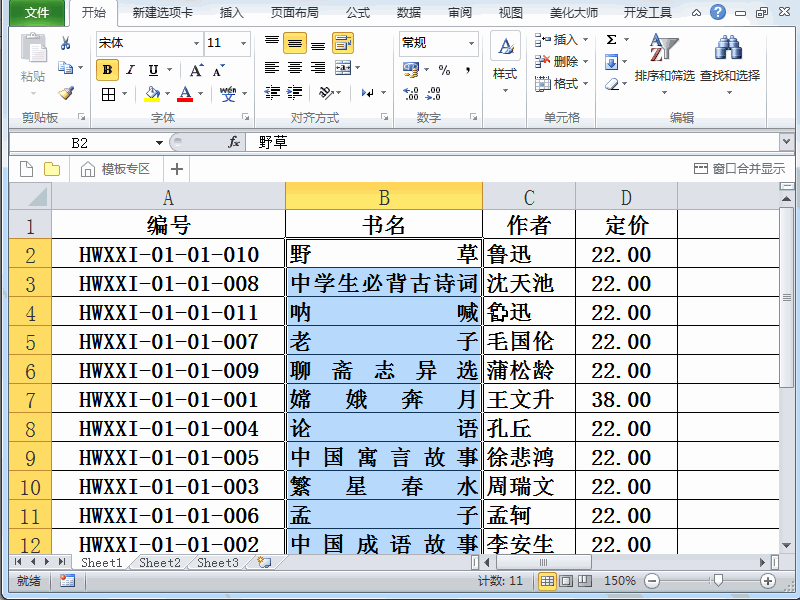 6、如果其他列也要設置分散對齊的話,重復步驟5即可,執行視圖-分頁預覽命令,查看效果。