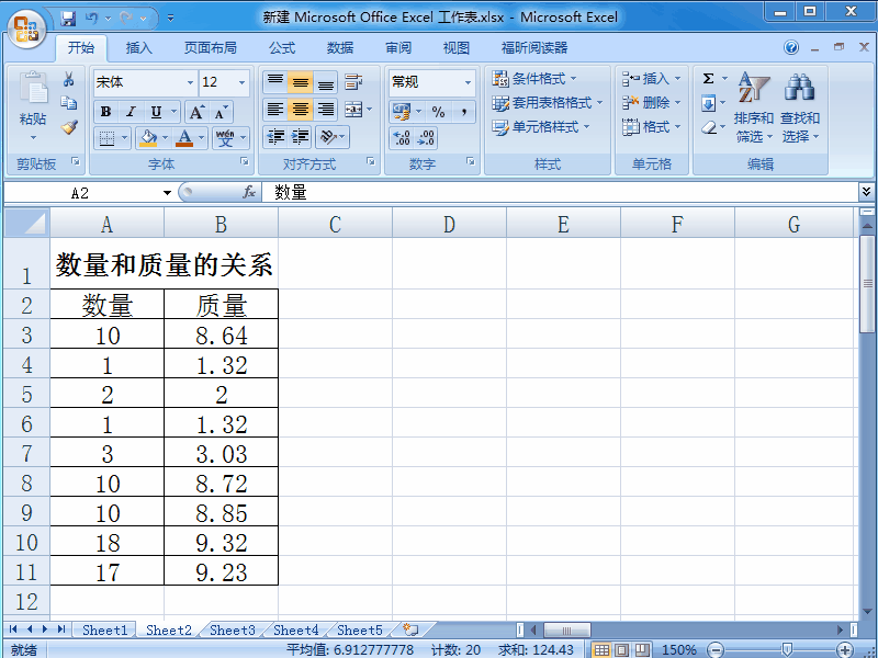 1、將兩組數(shù)據輸入excel 2007中,并且選中這兩組數(shù)據。注意,現(xiàn)在不要選中標題