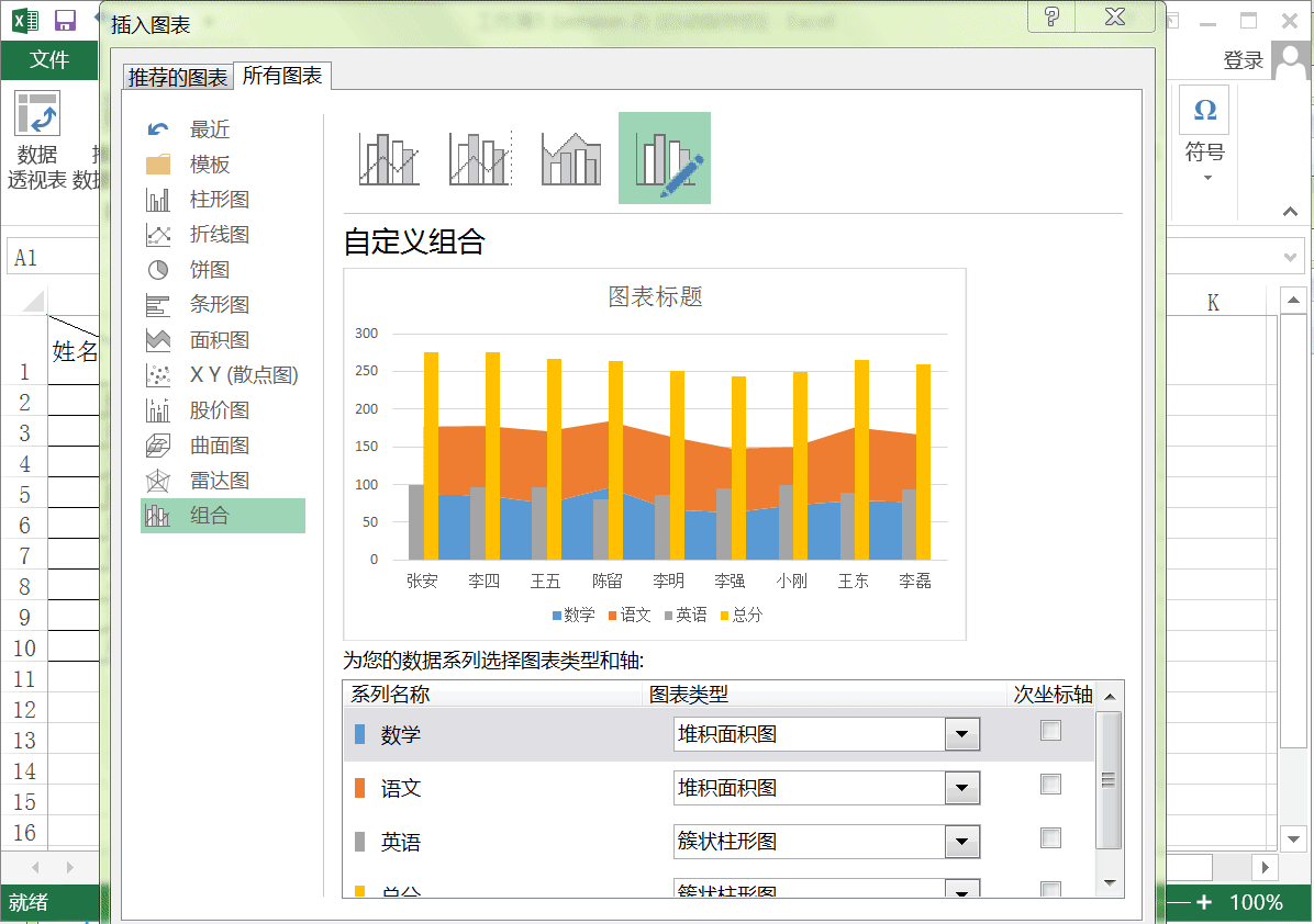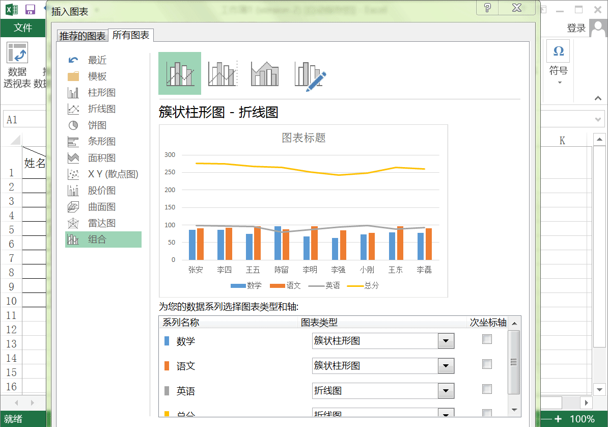2、進入之后,選擇右側的所有圖表,然后選擇最下方的組合圖。