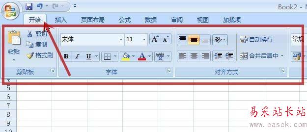 5、可用鼠標左鍵單擊主功能命令,這里以點擊“開始”(圖中紅色箭頭所指)為例,則功能區(圖中紅框)會彈出