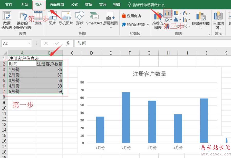 1、首先打開Excel表格,然后選中要統計的數據,然后選中菜單欄的插入,在選擇柱形圖,就會得到一個柱形圖統計圖