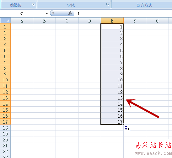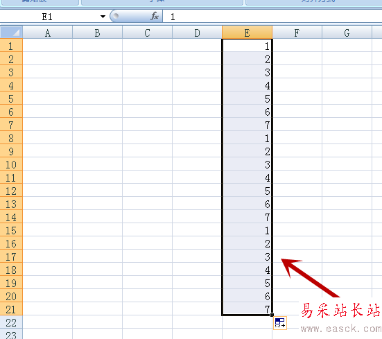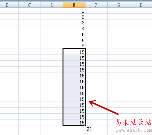 7、之后即可出現拉取的區域出現相同的數字,而不是遞增就可以保持不變啦,如圖所示。