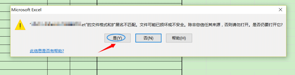 3、在彈出的提示文件不匹配窗口,我們無需理會,直接點擊"是",然后我們會發現之前的.et文件也是可以被Excel讀取的,如下圖...