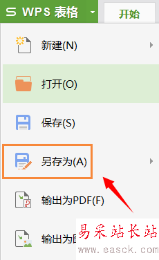 5、接著點擊左上角的"WPS表格"-"另存為",然后將文件保存類型設置為.xls或者.xlsx均可,這樣下次直接雙擊就可以通過excel打開該文件了,見下圖...