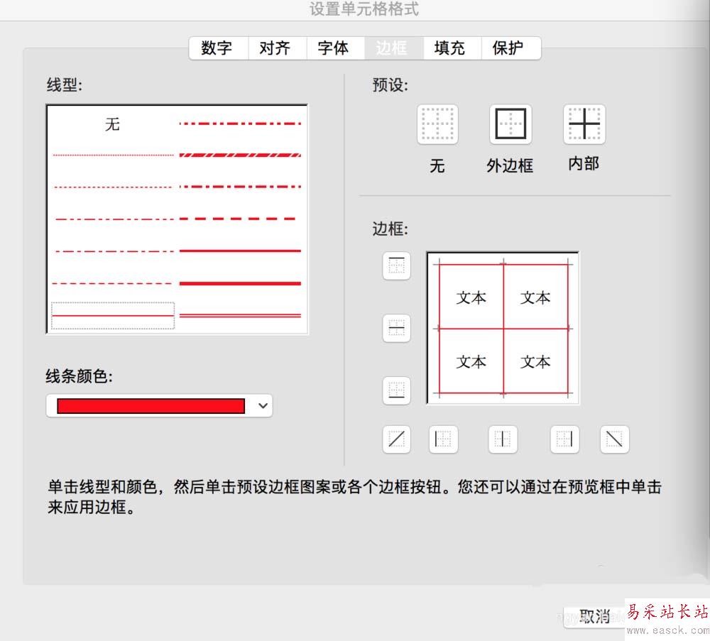 8、分別勾選外框,內(nèi)框,然所有框線都是紅色