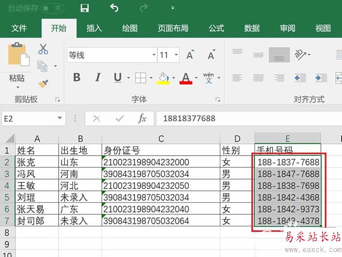 Excel 2016表格中的手機號碼怎么加密?