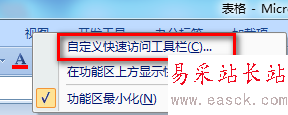 1、首先,在功能區上鼠標右鍵,選擇【自定義快速訪問工具欄】。