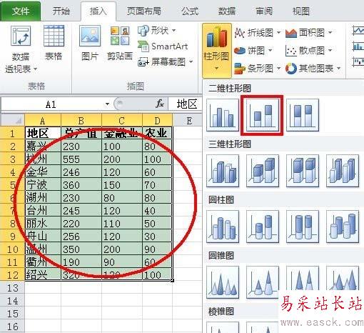 Excel表格數據怎么轉換成多列堆積柱形圖?