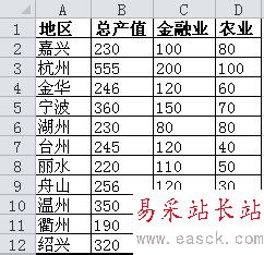 1、統計圖對于一些辦公室的工作者來說是經常要用到的,小編就簡單建立一個表格,挺具有代表性的,這些大家在新聞聯播中也會看到,我們的經濟用統計圖來顯示增長方式;小編就制作了一個浙江省的數據表格,數據純屬瞎編,只為設計圖表。