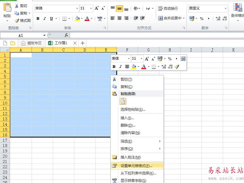 2、右鍵單擊該數據區域,從下拉菜單中選擇設置單元格格式選項。