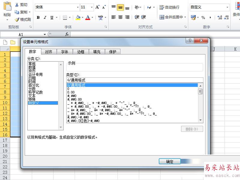 3、在彈出的設置單元格格式對話框中切換到數字選項卡,分類中選擇自定義。