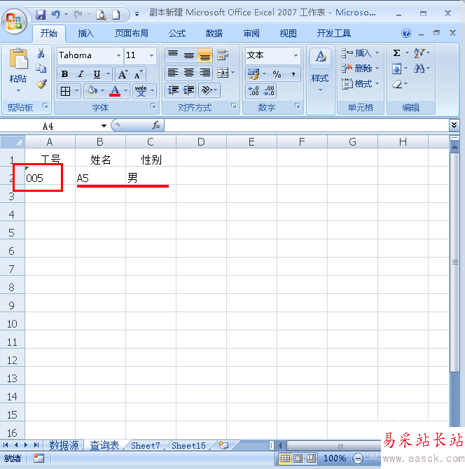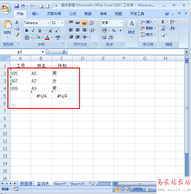 5、接下來可任意輸入需要查詢的工號,輸入后即可顯示姓名和性別(如圖);