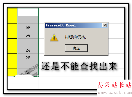 5、我們用定位對話框來定位空值時,是不能把B2,B3,B6,B9查找出來的。會彈出對話框:未找到單元格,所以有些朋友會很困惑,明明看到是空的,但用定位就是不能把空單元格給查找出來。