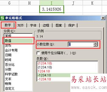 excel四舍五入設置方法2:利用excel的“設置單元格格式”功能